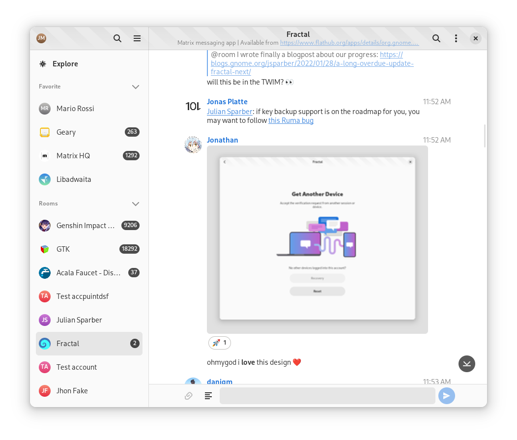 Fractal-Next is better integrated with GNOME's secret management service Seahorse